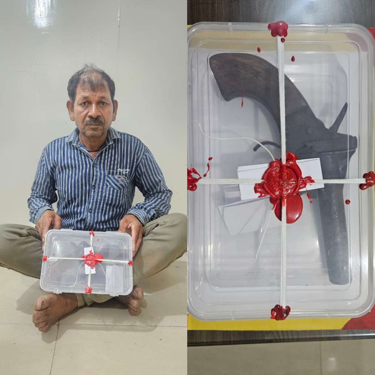 જે અનુસંધાને SOG શાખાના પો.ઇન્સ. એસ.જે. રાણાના માર્ગદર્શન હેઠળ પો.સબ.ઇન્સ. એમ.એમ. માળી SOG શાખાના કર્મચારીઓ સાથે દાહોદ રૂરલ પો.સ્ટે. વિસ્તારમાં પેટ્રોલીંગમાં હતા તે દરમ્યાન SOG શાખાના અ.હે.કો. દિવાનભાઈ જામસિંગભાઇ નાઓને બાતમી હકિકત મળેલ કે, દાહોદ રૂરલ પો.સ્ટે. વિસ્તારના નાની સારસી ગામે મુવાલીયા તળાવ તરફ જતા રોડ ઉપર મુવાલીયા ગામનો બદુભાઇ છગનભાઇ જાતે ડામોર નાનો બેઠેલ છે, જેણે શરીરે બ્લુ કલરનું સફેદ લીટીઓવાળું શર્ટ તથા કથ્થાઇ કલનું પેન્ટ પહેરેલ છે. જેની પાસે ગેરકાયદેસર હથિયાર છે, તેવી સચોટ બાતમી મળેલ. જે બાતમી આધારે હકિકત વાળી જગ્યાએ જઇ વ્યુહાત્મક રીતે રેઇડ કરતા ઉપરોકત આરોપી બદુભાઇ છગનભાઇ જાતે ડામોર ઉ.વ.૪૭ વર્ષ, ધંધો.ખેતી રહે, ડામોર ફળિયું, ગામ: મુવાલીયા, તા. જી.દાહોદ વાળો પકડાઇ ગયેલ જેની પંચો રૂબરૂમાં સાવધાની પૂર્વક અંગઝડતી કરતા એક દેશી હાથ બનાવટનો તમંચો મળી આવેલ.