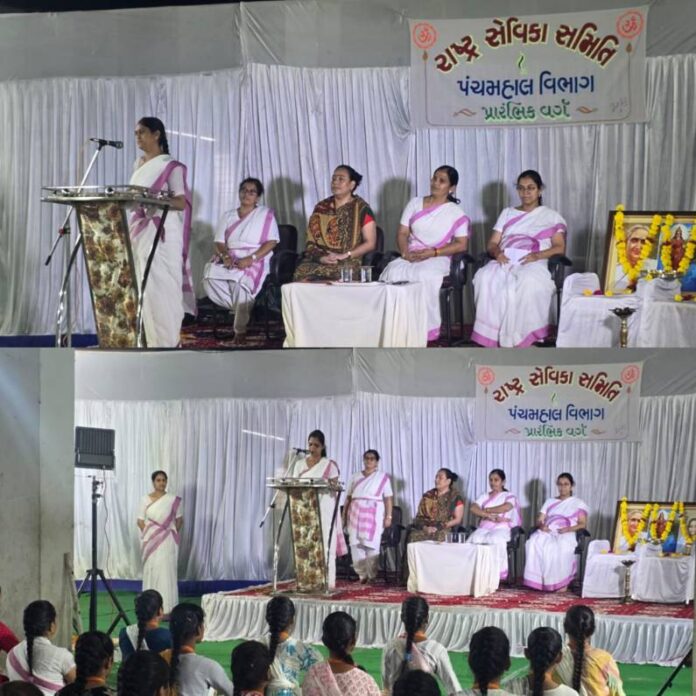 રાષ્ટ્ર સેવિકા સમિતિ, પંચમહાલ વિભાગ દ્વારા 13 વર્ષથી વધુ વયની બહેનો માટે પાંચ દિવસીય નિવાસી તાલીમ એવો “પ્રારંભિક વર્ગ” એકલવ્ય સ્કૂલ, ખરેડી ખાતે યોજાયો. 27,ઓક્ટોબર થી 02,નવેમ્બર-2025 સુધી ચાલેલા આ પ્રશિક્ષણ વર્ગમાં દાહોદ, પંચમહાલ અને મહીસાગર જિલ્લાની કુલ 94 બહેનો દ્વારા પ્રશિક્ષણ લેવામાં આવ્યું.